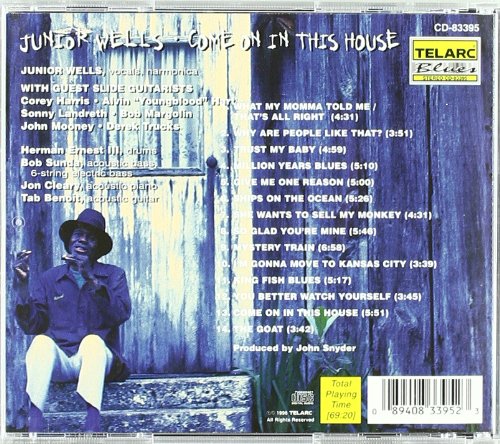 On this 1996 recording the veteran blues harmonica player Junior Wells is teamed up with a stellar lineup of blues guitarists: Alvin Youngblood Hart, Tab Benoit, Sonny Landreth, Derek Trucks, Bob Margolin, John Mooney and Corey Harris. They accompany Wells on slide guitars as he performs vintage Chicago and Delta blues from the repertoires of Rice Miller, Little Walter, Tampa Red, Arthur “Big Boy” Crudup and Wells himself. The result “stands beside the singer/harmonica player’s finest work.” (Q magazine).